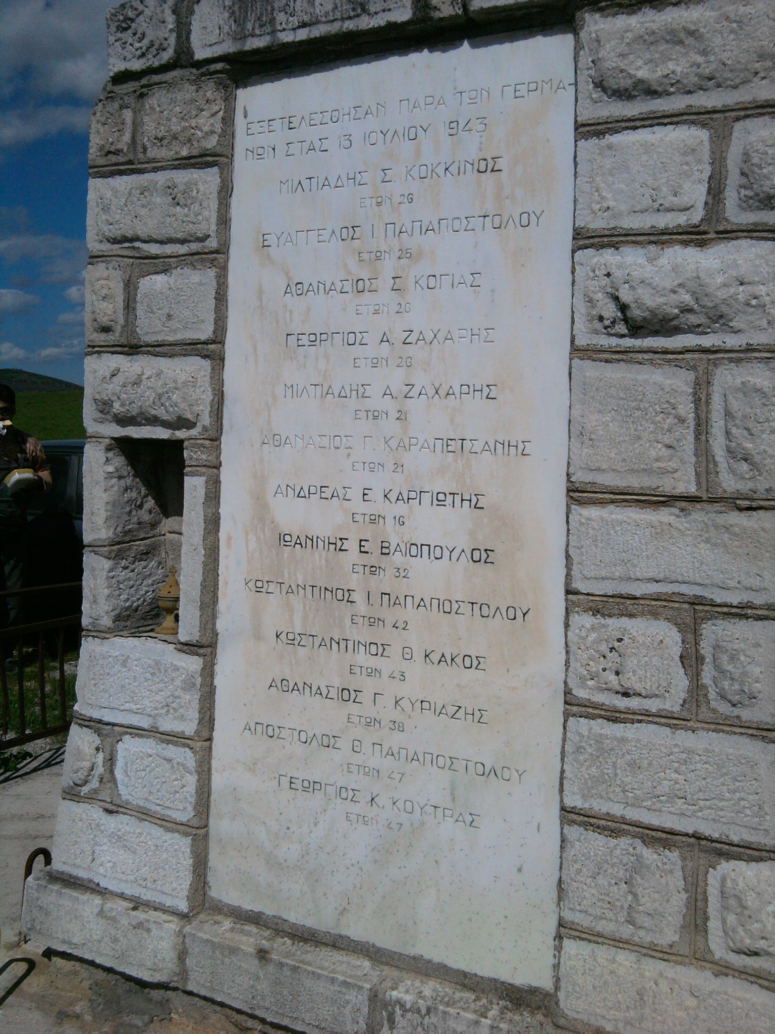 Ο τύμβος έχει στηθεί στα Μεταλλεία του δήμου Δομοκού, για τους 13 εκτελεσθέντες από τα στρατεύματα κατοχής σαν σήμερα, 13 Ιουλίου του 1943.