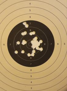 Είναι προφανές ότι δε θα μπορέσει να έχει τα αποτελέσματα που περιμένει κανείς ότι θα έχει, στον πρώτο γεμιστήρα. Θα αδειάσει έναν, δύο, τρεις… Επειδή η αθλήτρια του συγκεκριμένου παραδείγματος ξέρει να ρίχνει σωστά, εφαρμόζοντας τις βασικές αρχές της σκοποβολής και με λίγη καθοδήγηση από κάποιον εκπαιδευτή, θα το βρει πολύ πιο γρήγορα από έναν άλλο, λιγότερο έμπειρο ή λιγότερο ικανό σκοπευτή. Και από κει και πέρα, απλά θα έχει ένα μοτίβο του πού προσπίπτουν οι βολές της επί του στόχου, το οποίο απλά θα επαναλαμβάνεται με την επανάληψη των βολών της. Και επειδή ακριβώς ξέρει να ρίχνει σωστά, όσο περισσότερο ρίχνει και συνηθίζει το όπλο που της δόθηκε, τόσο περισσότερο θα μικραίνει ο κύκλος στον οποίο θα διασπείρονται οι βολές της (και άρα τι θα κάνει η… πιστότητα των βολών της;).