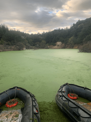Το, σχεδόν μυστικιστικό, τοπίο με τα πράσινα νερά της λίμνης που τα περίπολα έπρεπε να διασχίσουν